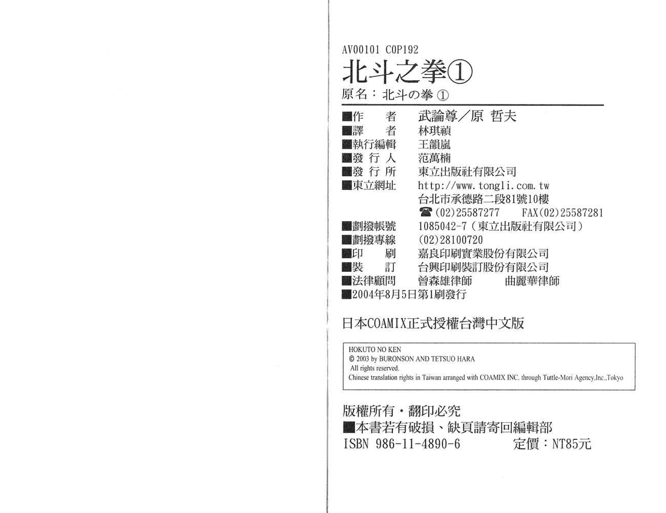 北斗神拳 001卷